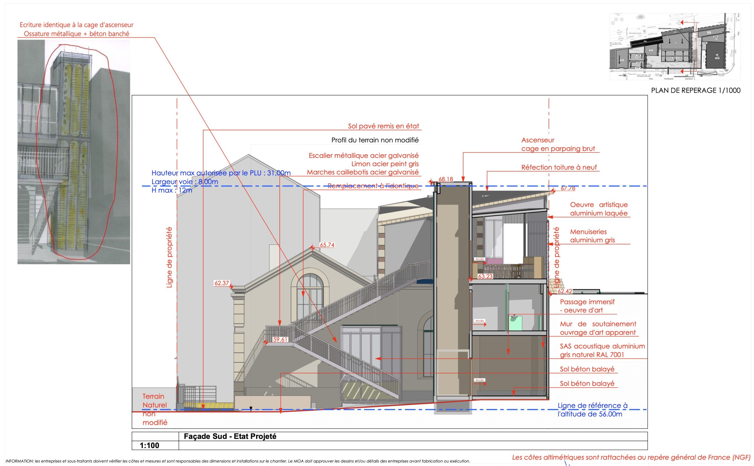 Il prévoit aussi l’aménagement de la cour, la reconstruction de l’escalier extérieur, l’aménagement d’un ascenseur et la récupération du quai de la voie « intérieure ».