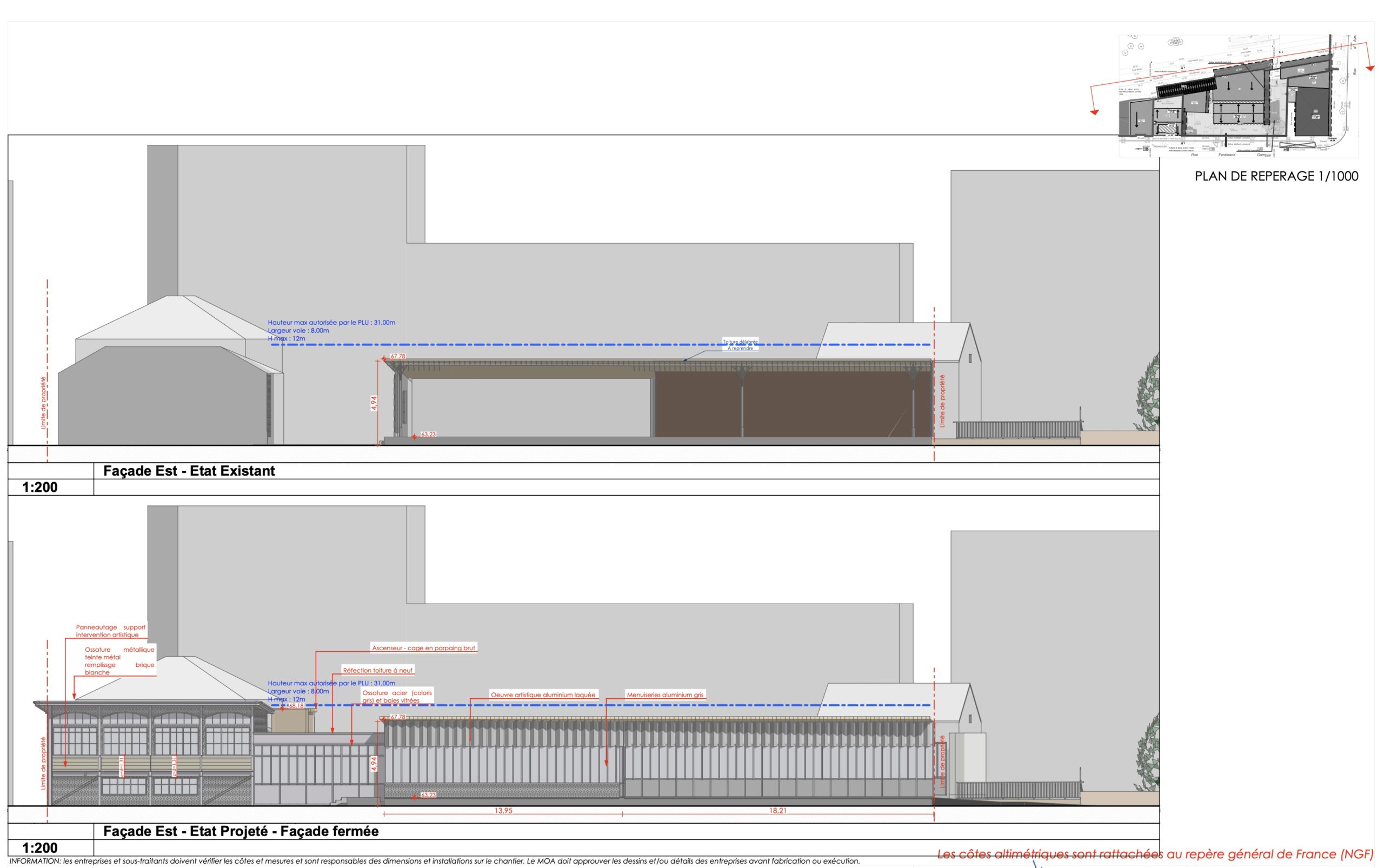 Tel qu’accordé à la SAS Passerelle A, le permis de construire porte sur « la restructuration de l’ancienne gare d’Avron et la création d’un restaurant et d’un salon de thé avec accès pour les personnes à mobilité réduite, l’aménagement du terrain et des espaces libres, l’extension, la surélévation partielle et la modification d’aspect extérieur d’une construction à R+2 sur 1 niveau de sous-sol ».