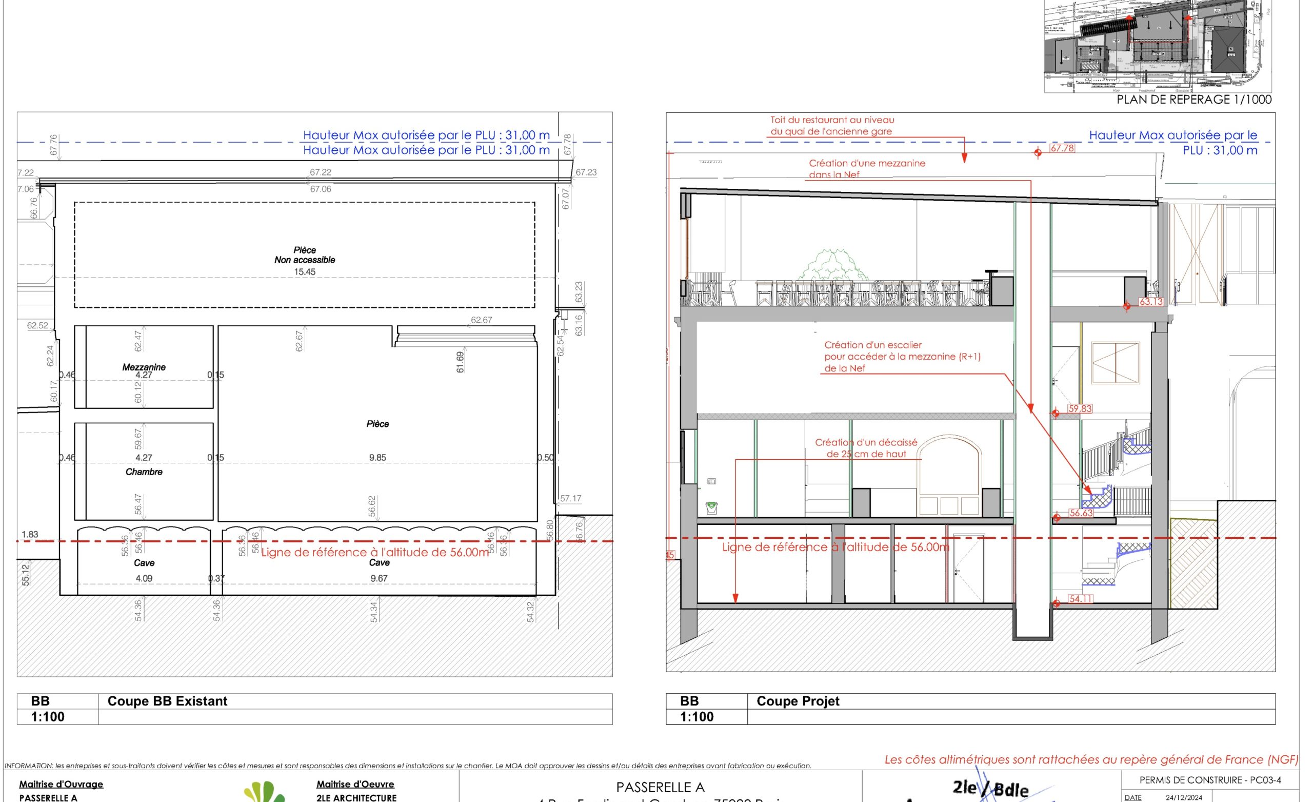 Retrouvez ci-dessous les plans des aménagements prévus par le projet Passerelle A, tels que présentés dans le permis de construire déposé le 6 janvier 2025 :